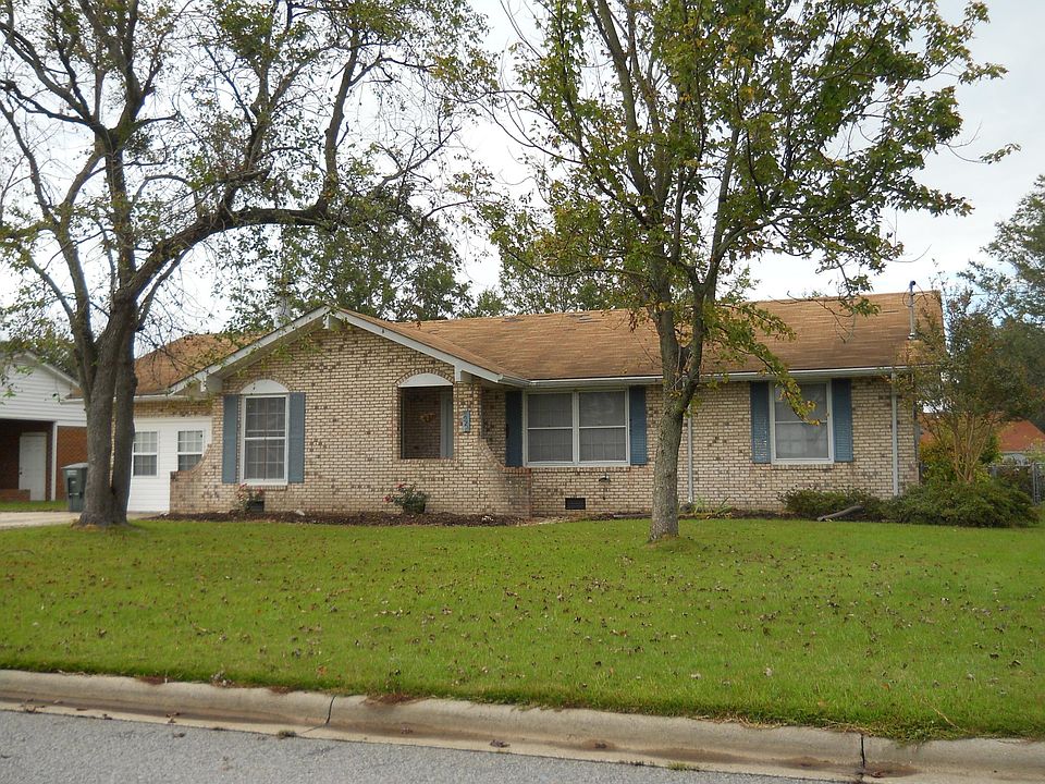 Brick 3 bedrooms and 2 full baths has been freshly painted thru-out. Offers 1437 sq. ft. with some new flooring in Kitchen, laundry area, hallway and master. There are 2 living room areas, one small with fireplace, Central heat and air except inclosed garage which offers another 200 sq. ft. for an office or man cave or she shack room. Large Fenced in yard with a storage unit as well and Located between Greenville and Kinston.