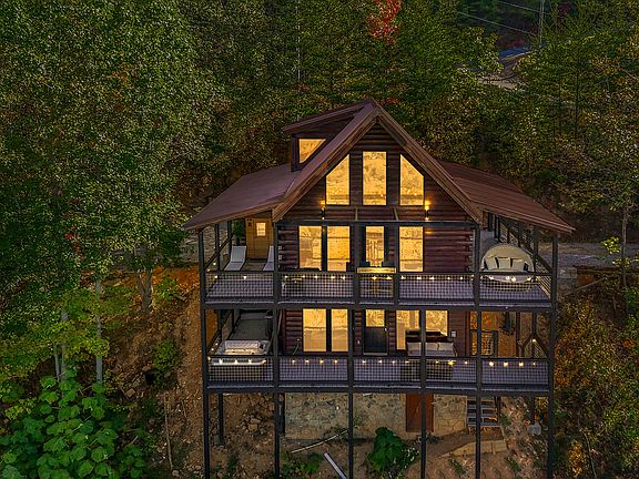 Tucked away in the breathtaking Wears Valley, Sunset Mountain is the ultimate honeymoon retreat where rustic charm meets contemporary luxury. Fully remodeled and coming fully furnished and turn-key, this stunning one-bedroom cabin is not only a romantic escape but also a proven income-generating investment. With $44,298 already booked stretching far into the future, this cabin offers immediate cash flow and a seamless transition for its next owner. Step inside and be captivated by the vaulted ceilings and abundant natural light that enhance the open-concept living space. The main level features two cozy fireplaces—one with a TV in the living area and another in the luxurious bathroom, where a stunning clawfoot tub invites you to soak in complete relaxation by the warm glow of the fire, creating a true spa-like retreat. The modern kitchen is fully equipped with high-end appliances and granite countertops, making it perfect for preparing intimate meals. After dinner, retreat to the private theater room for a movie night in the comfort of your own luxury cabin. The master suite is a haven of tranquility, offering a plush king-sized bed, an ensuite bathroom, and its own private fireplace—all designed for ultimate comfort and relaxation. The romance continues outdoors, where double-level decks provide the perfect spot for morning coffee, sunset toasts, or grilling under the stars with the gas grill. Unwind in the private hot tub while taking in sweeping mountain views, or enjoy a rejuvenating session in your private sauna. Beyond the cabin, Sunset Mountain's prime location offers both seclusion and convenience. Just a short drive away, you'll find Dollywood, Pigeon Forge, and Gatlinburg, where world-class dining, entertainment, and adventure await.