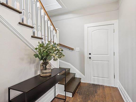 Charming 3-Bedroom Craftsman Home with Spacious Yard & Modern Comforts. Welcome to this beautifully updated 3-bedroom Craftsman-style home, perfectly blending classic charm with modern conveniences. Featuring hardwood floors on the main level and stunning cork tile upstairs, fresh interior paint, and a formal dining room, this home offers a warm and inviting atmosphere throughout. Enjoy year-round comfort with mini-split A/C and heating, and the convenience of main-floor laundry. The spacious front porch is perfect for relaxing or entertaining, while the large yard provides plenty of room for gardening, play, or outdoor gatherings. A detached garage offers secure parking and extra storage. Located close to restaurants, shopping, and public transportation, this home offers both comfort and convenience in an ideal location. [Home Energy Score = 6. HES Report at https://rpt.greenbuildingregistry.com/hes/OR10242064]