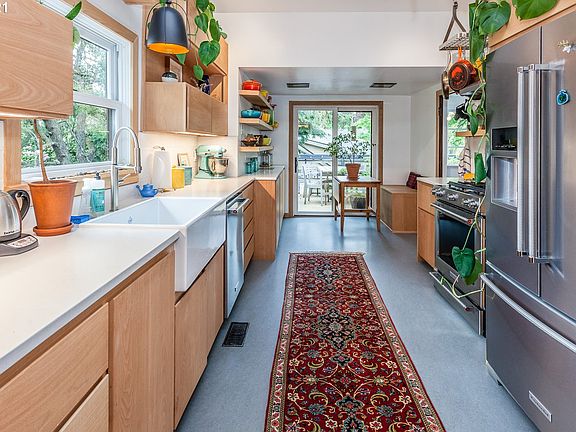 Gorgeous updated craftsman home with a relaxing atmosphere. Fully fenced yard with lots of greenery and patio space. Home includes many original features such as wood paneled walls, built-ins, & hardwood floors. Newly remodeled kitchen with contemporary finishes, quartz counters, custom cabinetry, farmhouse sink, and high quality hardware and appliances. New roof, updated panel and remodeled bath. This urban oasis includes a private elevated deck off the kitchen overlooking the yard below. [Home Energy Score = 5. HES Report at https://rpt.greenbuildingregistry.com/hes/OR10190737]
