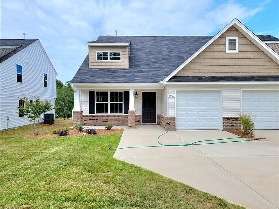 NEW NEIGHBORHOOD - Villas at Strawberry Creek by Windsor Homes! INDIANA floorplan (end unit) with Primary Bedroom on main. Kitchen has grey cabinets, ceramic tile backsplash, blanco matrix quartz countertops and vented gas range. Luxury Vinyl Plank flooring throughout main. Two Bedrooms, Loft and Finished Storage/Office room upstairs. One-Car Garage, Patio with Storage Building. Walking distance to Proehlific Park Sports Center, minutes from Battleground and New Garden shopping, parks and highway access. Lot 43 is under construction. Call/text Kate for an appointment to visit. Photos and virtual tour are representative of floorplan, not decorator selections.