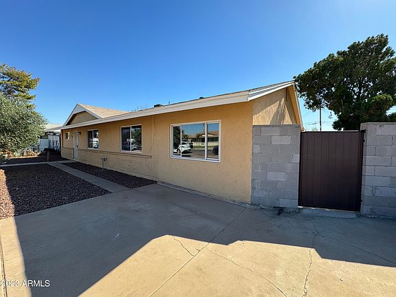 GREAT House in Phoenix! 5 bedrooms and 3 baths. The east side entrance step into the living room, 3 bedrooms, one bath and an open eat-in kitchen. At the side of the kitchen step into a jack and jill room sharing a bathroom. Pass through a sliding glass door to the other side of the house with a master suite, kitchen and a living room. A separate entrance at the living room access to the west side of the yard. House have new flooring, newly painted, partial new windows. The house has potential to turn into two separate dwellings.