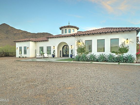 Own a piece of paradise at the base of South Mountain in a luxurious, private neighborhood. This custom-built estate boasts breathtaking mountain views and quick access to the I-10 and 202 freeways. Sunset Cove Estates truly embodies its name, offering the Phoenix Valley's most breathtaking sunrises and sunsets. Spanning approximately 3,462 sqft, this home features 4 spacious bedrooms with walk-in closets and 3.5 elegantly designed bathrooms, including a Jack and Jill for convenience. Revel in 14-foot ceilings transitioning to 10-foot in the bedrooms, creating an airy feel. A grand iron front door opens to an expansive living area with a 15-foot window slider framing gorgeous views. The split master suite provides a private retreat, and South Mountain Park's hiking and biking trails are steps away. Experience luxury, comfort, and panoramic views in this exceptional home.