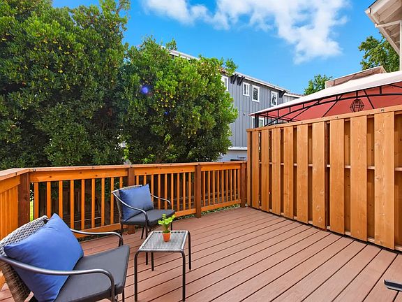 Freshly painted interiors throughout bright, clean and move-in ready. Remodeled kitchen & bathroom with modern finishes and quality appliances. Newer HVAC system: upgraded air-conditioning and heater (ensures comfort year-round). Spacious and open living space: comfortable layout for relaxing and entertaining. Kitchen features: white cabinets with glass-front uppers, contemporary hardware, upscale backsplash, stainless-steel refrigerator & range. Private deck off the dining/kitchen area: ideal for morning coffee, outdoor dining or unwinding in the evening (see photo). Beautiful wood-tone floors on main level: warm & inviting yet easy to maintain. Quiet, safe neighborhood setting tucked away yet conveniently located. Walking distance to top schools, Shopping & groceries Owner pays: HOA fees ($463/month), which include water, garbage, and sewage. Tenant pays: Electricity and gas (via PG&E), internet (via Xfinity), and renter's insurance. Lease requirements: - First month's rent and security deposit due at signing. - Minimum 12-month lease term preferred. - No smoking allowed inside the unit. Maintenance: Owner handles exterior, HOA-covered maintenance, and appliance repairs; tenant responsible for routine upkeep and cleanliness.