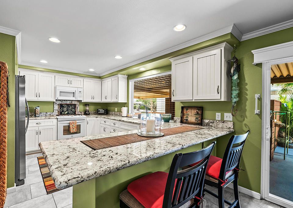 Covered parkingEco-friendly evaporative coolerTile flooringPull-out cabinetsCrown moldingStriking curb appealRecessed lighting