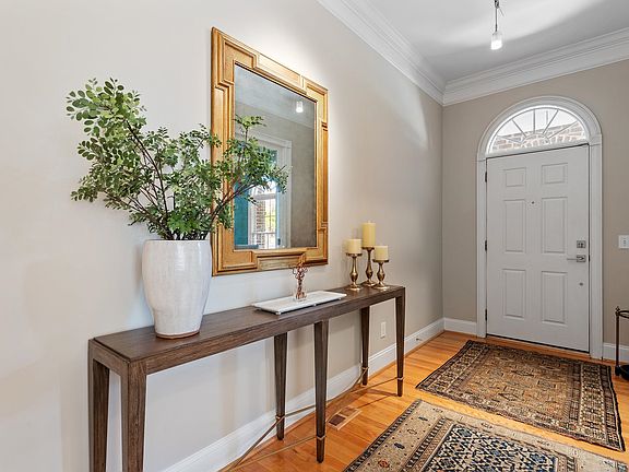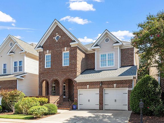 Beautifully updated home in desirable Bentley Ridge Townhomes! These townhomes live like detached homes as they are only connected to the storage shed walls. This three-bedroom, two-and-one-half-bath property features nine and ten-foot ceilings, numerous updates, a two-car garage, beautiful hardwood floors and a welcoming, open floor plan. A private office/study with built-ins, a separate dining room, a bright sunroom, a large living room with a gas fireplace and an updated, gourmet kitchen comprise the main floor. The second floor features a large primary bedroom with a gas log fireplace, two walk-in closets and a spacious bath. Two generous-sized bedrooms and an updated hall bathroom complete this floor. This townhome is filled with natural light. Outdoor spaces consist of a covered, brick front porch and a private, fenced backyard. New gas water heater in 2023 and a new roof in 2020! The location is within walking distance of shopping, Starbucks, restaurants and only a short drive to medical facilities, downtown Raleigh, RDU airport, RTP and more. See documents for a list of improvements.