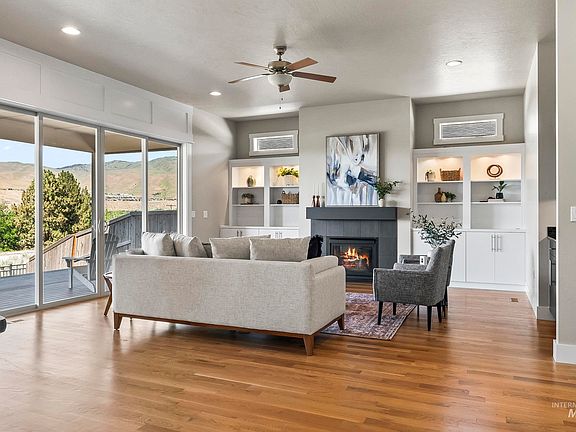Poised on a coveted rim lot, this single-level sanctuary offers a rare blend of natural beauty & sweeping views. Thoughtfully crafted to harmonize with its extraordinary surroundings, the home captures panoramic foothill views from nearly every room framing the landscape as living art. The open-concept great room features vaulted ceilings, built-ins & a gas fireplace, seamlessly flowing into the chef’s kitchen, where custom cabinetry, an oversized island, and premium appliances combine form & function. The privately situated primary suite enjoys rim-front views, spa-inspired bath & generous walk-in closet. Secondary bedrooms plus a dedicated office are thoughtfully positioned at the front of the home, providing both privacy and flexibility. Fresh interior paint and new carpet add a crisp, move-in-ready feel. Outdoors, an expansive covered patio offers a front-row seat to Idaho’s seasonal splendor where golden foothill light and star-filled evenings await. All of this minutes to the Boise River and greenbelt.
