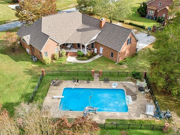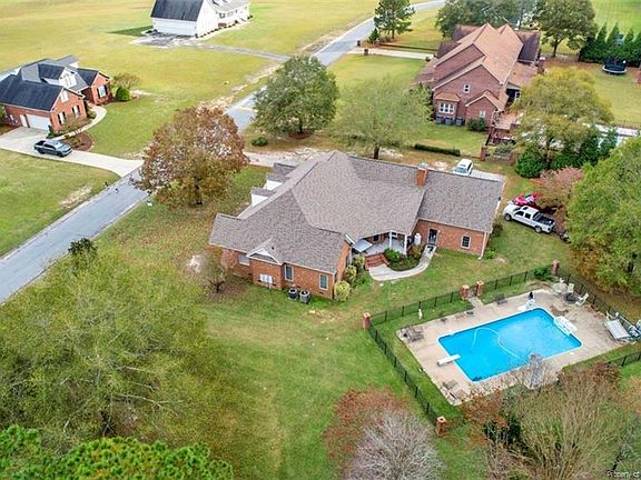 This stunning custom brick home in Eastover Air Ranch has 4 spacious bedrooms, 3 & 1/2 baths, Formal living & dining, family room, gorgeous kitchen with solid oak cabinets & new stainless-steel appliances. The architectural shingled roof & energy efficient HVAC system were installed in 2018. There is a commercial grade "instant" hot water heater so no fear of cold showers. There is a central vacuum system which makes cleaning a breeze. There's a spacious bonus room, an elegant office, & the master bedroom has a custom trey ceiling, large closets along with a master bath that is reminiscent of a spa. Both the kitchen & master bedroom have a view of the most incredible inground salt system pool. This pool is not only crystal clear but has a slide & a diving board. You will be the envy of the town when you entertain in your beautiful backyard. A recent survey is available to the buyer revealing the large .92-acre lot. Make plans to come & view this incredible property before it is gone!