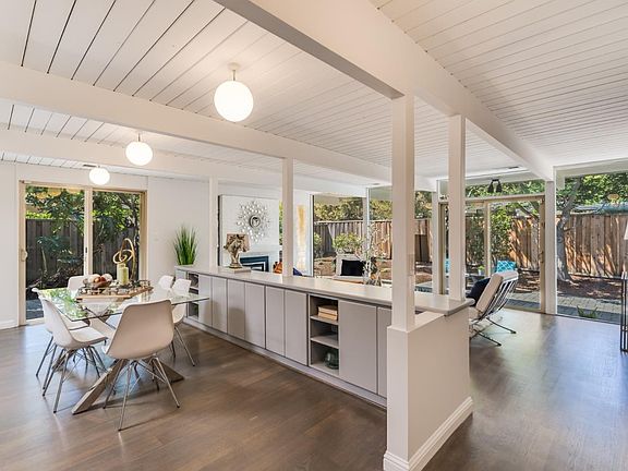 New Price! Elegantly remodeled & spacious Eichler on a beautiful and quiet tree-lined street to offer convenient living in highly desirable Fairmeadow neighborhood. Fantastic open floor plan with sunlit living room with floor to ceiling windows open up to a gourmet kitchen and a very private and beautiful back and side landscaped yard, patio. Upgrades include remodeled kitchen with quartz countertops and backsplash, stainless appliances, remodeled bathrooms, foam roof, double-pane windows, family room/office, and central A/C and heat. Bedrooms include spacious rooms and light-filled master bedroom that opens to recently landscaped beautiful low-maintenance gardens, perfect for lounging and entertaining. Private big landscaped fenced front yard. Prime location! Walk to groceries, coffee, the 'new' Community Center/library, shopping, 3 parks; bike to Caltrain, Google, Facebook, Apple, and more. Top-rated Palo Alto schools including Fairmeadow, Stanford, and Gunn.