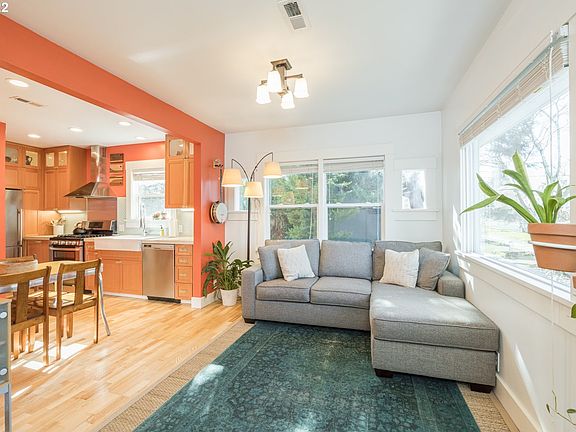Ideal, turnkey Roseway Bungalow. So much to love: tall ceilings & well-placed windows make it airy & bright, open floorplan w/modern kitchen (custom fir cabinets, concrete counters), beautifully updated bathrm, hardwoods. 600 sqft of unfin basement/laundry/storage, plus an AMAZING 672 sqft detached garage/shop/studio w/endless potential- must see this space! Wonderful entertainer's yard w/patio, garden beds. Updated systems-2016: elect, plumb, hvac, insul, seismic reinforcement, windows. HES-8!