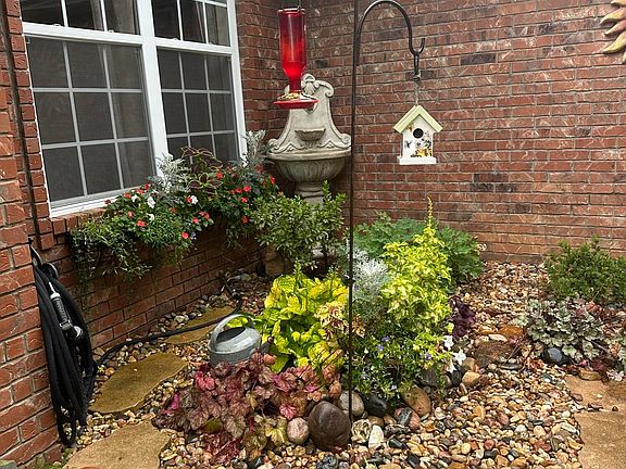 All brick charmer on corner lot in Prairie View Subdivision. This 4 bedroom home with 3 car garge has been meticulously cared for, with all of the upgrades! Beautiful cabinetry with granite countertops and breakfast bar, nice stainless steal appliances and huge pantry also a built in desk area. Enjoy formal dining room, hardwood floors throughout and gas fireplace in living room. Mater suite has jetted tub and double vanity along with walk in showeer. Major wow facotor with over the top landscaping. Back privacy fenced yard is your private oasis, with flagstaff patio, hot tub, and firepit for entertaining! Great storage building too! Lawn sprinkles in front and back yards with leaf guards on gutters. This home has everything you are looking for and more!