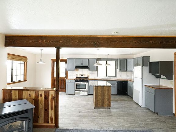 2 story Custom home. Detailed wood kitchen counters. New Luxury Vinyl Plank flooring , custom farmhouse kitchen island. Brand new AC and heating, Brand new dual pane windows with solar tinting, concrete patio over looking front acreage. Has custom built chicken coop/shed. New 10x12 Tuff Shed with loft.