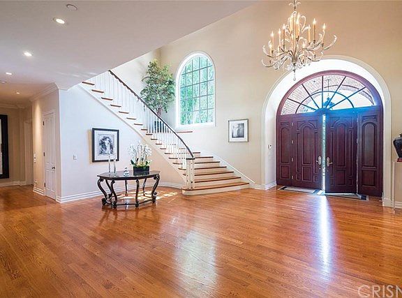 Stunning Royal Oaks English Manor estate on apx 1.3 acres of parklike grounds w/184 ft. frontage & circ driveway. Extensively rebuilt, remodeled and expanded to almost 9,000 sq. ft. in 2003-05. Dramatic 2 sty foyer w/crystal chandelier & elegant curved staircase. Hdwd floors extend throughout the grand scale entertaining rooms w/voluminous ceilings. LR w/floor-to-ceiling cast stone frplc. Adj media rm w/projector, screen, wall of built-ins, frplc. Banquet sized FD. Chef?s kitchen w/lg center island, granite counters, 2 DW?s, walk-in pantry. Wolf, Sub Zero & Miele appl. Kitch opens to FR & Jr. DR w/floor-to-ceiling frplc flanked by lighted glass shelving. 2 en-suite bdrms on main level, one of which is second master. A powder rm, laundry rm & utility room complete the main level. Upstairs there are 3 en-suite bedrooms. Spacious master suite w/wall of built-ins, frplc, luxurious ba w/steam shower, spa tub, enormous walk-in closet. Guest suite over 3-car garage w/LR, bdrm, ba & balcony. Lush rear grounds w/mature trees, pool, BBQ pavilion, extensive decking, lighted NS TC. 5 zoned HVAC, Lutron lighting. Lanai Rd Elem. & Hesby Oaks Middle School w/close proximity to Ventura Blvd shopping, restaurants, and easy Westside access.