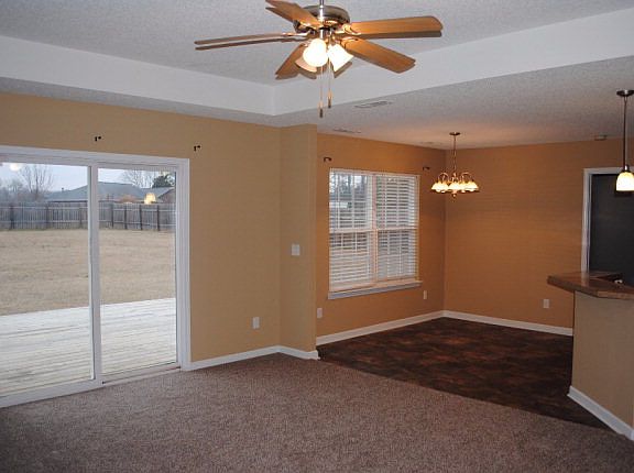 Move in Ready! 3 bedroom, 2 bath split floor plan with open great room to kitchen. New carpet and freshly painted throughout. Large backyard with privacy fence, 2 car garage, black appliances including refrigerator, custom stained kitchen cabinets, walk-in closet in Master bedroom, double vanities, and more. Convenient to the base. A must see!