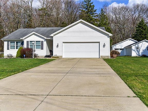 What a wonderful Ranch style home located in Mineral Ridge! Located on an oversized private wooded lot with Mill Creek Park Metro trails close by. When you walk up to the home you will notice the massive covered porch in rear of home and oversized two car garage. The home is also equipped with an Invisible Fence. When you walk in you are greeted by a Large Great Room with beautiful gas fireplace that opens up to the Large kitchen with a New Disposal, New Refrigerator, New Dish Washer and dining area. The three bedrooms are large in size with the Master bedroom offering an en-suite. The large basement offers another room that can be used for a fourth bedroom w/large custom made walk in closet, and features the rough plumbing for another half bath. Outside is a detached 1,200 square foot Insulated Shop with two over head doors and has rough plumbing for full bathroom. This home truly is a must see!