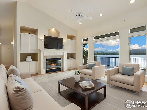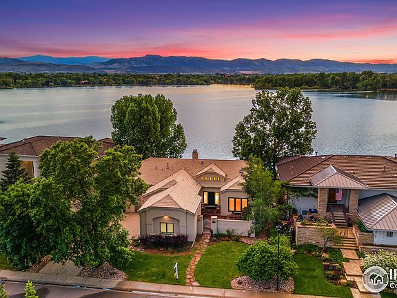 A DREAM COME TRUE AND TRULY A RARE FIND- Experience waterfront living with stunning mountain views in this mission style home featuring a main floor primary and a walk-out lower level on the desirable Warren Lake. Enjoy daily panoramic views of the water and mountains from your front-row seat. Walk down to your private dock to swim, fish, or simply enjoy the beautiful sunsets and sunrises. Situated on one of the best streets in Fort Collins, this home boasts a central location with pristine mature landscaping, green belts, and the largest private lake in town. A private flagstone courtyard sets the tone as you enter through the front door, immediately greeted by views of the expansive lake and mountains through the open floor plan. The main level features vaulted ceilings, two bedrooms, a great room, and oversized formal and informal dining areas. The master suite offers breathtaking water and mountain views from every room. The lower level includes three additional bedrooms, a study, and beautiful views. A walkout basement leads to a large patio and yard. Centrally located, you are minutes from amazing restaurants and shopping. Enjoy watching the wildlife in the stocked and irrigated lake, which is a haven for bald eagles. Paddleboard right from your own backyard and store your toys in the oversized three-car garage. This is truly a magical location!