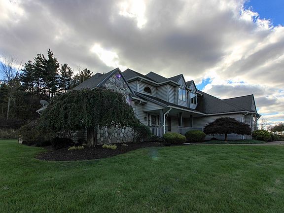 Beautifully situated overlooking the pond, this gorgeous Ontario country home on two acres is loaded with amenities! Large, tiled entry leads you to the Great Room with cherry floors, soaring ceilings & gas log fireplace. Terra Cotta tiles accentuate the applianced, gun stock oak kitchen. Sumptuous master suite with spa-like bath and walk-in closet. Main level office. Large laundry room with plenty of workspace. Three bedrooms up with giant closets. Basement features theatre area & entertaining space (plumbed for a wet bar), full bath with tiled, walk-in shower. New ('17) hot rod garage is ManLand deluxe! Concrete patio for outdoor fun and covered front porch. Geo/Thermal low bills!