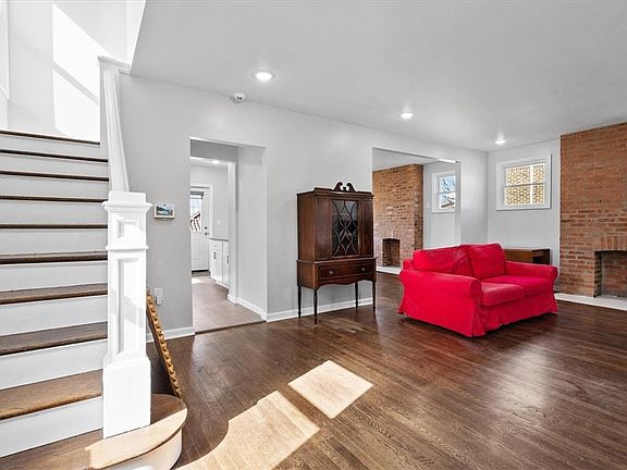 Move-in Ready! This spacious solid brick home was renovated in 2020/2021. Beautiful open-concept floor plan with hardwood floors and lots of natural light! The sunny kitchen has an abundance of white cabinets, granite counters, stainless appliances and breakfast bar. The kitchen leads out to the 12'x10' deck. A perfect spot for summer dinners on the deck! The first floor also has a large living room, dining room, sun room/den and half bathroom. The second floor has a spacious primary bedroom with ensuite bathroom. Two additional bedrooms, a full hall bathroom with 2nd floor laundry. The third floor has an additional bedroom with lots of closet space. Large fenced yard and two car detatched garage! Reconstructed terracotta Roof-New electrical, Thermoseal spray foam insulation, newer mechanicals (2 AC's) & most windows have been replaced. Complete waterproofed basement.