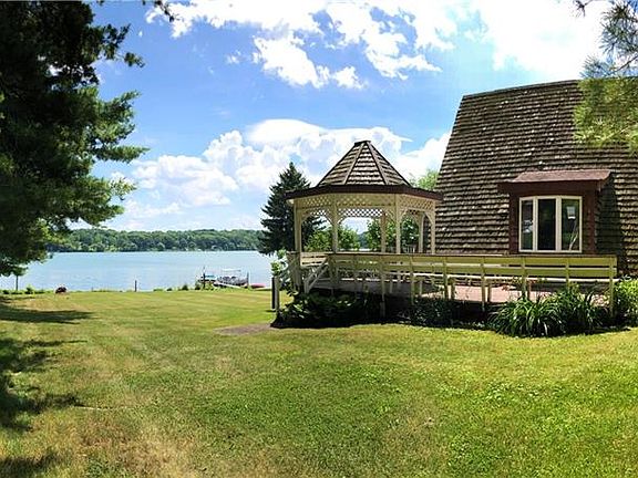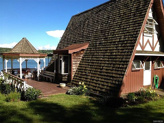 Classic Silver Lake Storybook Cottage on 90+ft of desired West side gently sloping, gorgeous panoramic waterfront views. Listing is two properties combined, with Barn & loft rental potential! Highly sought after deep lot with mature trees & privacy. Galley kitchen with bfast bar. Open family room with soaring ceiling leads to gorgeous lake views! Covered porch w/lg wrap around deck & gazebo. Quality tongue & groove thru-out. Property includes two-story barn & spectacular 20 ' x 30' party loft. This lake home is on quiet street minutes to Letchworth State Park and literally steps onto the greens of Silver Lake Country Club GolfCourse. Fantastic fishing in Lake. Lots of room for parking and Large lawn ideal for outdoor entertainment.Year round street with snow & garbage removal services.