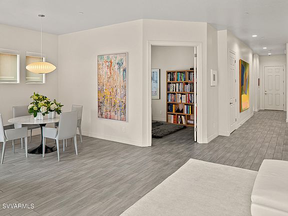 Exquisitely upgraded Mescal Plan Luxury Patio Home. Ready for you to move in! Maintained as though it has never been occupied. One level, split floor plan w/den. Modern & bright. Stainless kitchen, shaded windows & plank tile throughout. Primary Suite has resort style bath, tile & glass shower, custom cabinets. California Closets in ALL closets, the linens, laundry & the kitchen pantry! Fireplace w/white tile surround & pine mantel. Epoxy floor 2-car garage w/advanced technology soft water system. - NOW - priced to sell. Gated & elegantly defined Park Place is perfectly situated in West Sedona. EASY ACCESS to hike & bike TRAILS, Seven Canyons Golf, farmers market, casual & fine dining. Perfect as a carefree primary home or Sedona Vaca home!. Gated & Gorgeous.