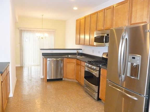 Spacious 2-story townhouse w/9'' ceilings thru out 1st floor~Great kitchen w/42" maple cabinets & stainless steel appliances~2-story living room w/fireplace~Dining room w/glass doors to private patio~Master bedroom w/walk-in closet & private bath w/tub & separate shower~2 addt bedrooms, full bath & powder room~2nd floor laundry~Community clubhouse/pool, parks & ponds~Ask about the new conventional loan w/only 2% down!