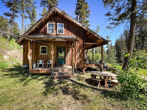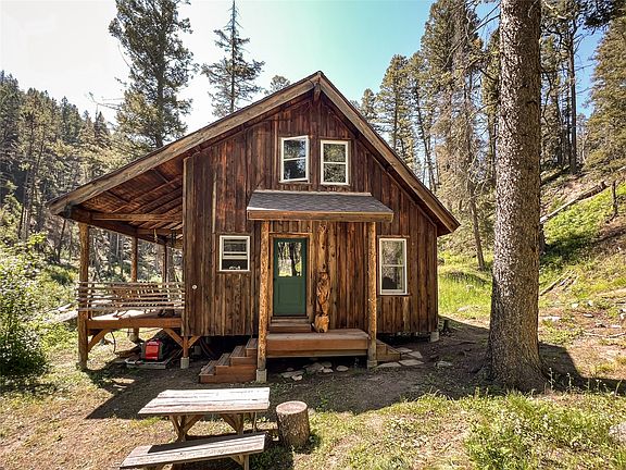 Welcome to your dream outdoor retreat in Rimini! This stunning property sits on over 10 acres of natural beauty, nestled alongside Ten Mile Creek with a half-mile creek frontage on both sides. Adjacent to forest service land, this property offers privacy and access to miles of untouched wilderness. Whether you're seeking adventure or solitude, this unique 4-season property has much to offer. Step into your 1100 sq. ft. off-grid cabin, designed to blend rustic charm with modern comfort. Equipped with propane lights, stove and refrigerator, you'll enjoy “modern” amenities without sacrificing the off-grid experience. **Winter/Spring access can be very challenging, possibly requiring chains and walking through 1 foot of snow. There is no parking next to the cabin, parking is up at the road. To access the cabin you must walk from the road down a steep bank or use the ATV trail. Any changes to the cabin would be subject to current county zoning regulations. Buyer to confirm.** With its thoughtful design and many efficiencies, this retreat cabin has a homey feel. Cozy beside the wood stove on chilly evenings, or bask in the natural light streaming through the windows. The cabin comes partially furnished, which helps the ease of settling in. In addition to the cabin, there's an 8'x14' warming hut with a sleeping loft that doubles as storage for tools and an ATV. The quickly heated hut is perfect for staying cozy upon arrival while the cabin warms on below zero winter days. Take in the sights and sounds of nature from the comfort of your covered decks, perfect for enjoying your morning coffee or evening meals al fresco. Multiple outdoor fire pits invite gatherings under the stars, while trout pools and fishing opportunities abound for the avid angler. Explore the property's creek trails, picturesque falls and two log bridges. With two natural springs on-site, you'll never be far from refreshing water sources. Whether you're seeking outdoor adventure or simply a place to unwind this property offers endless possibilities. Don't miss your chance to own your own slice of outdoor paradise. Call Erin at 406.465.3933, or your real estate professional.