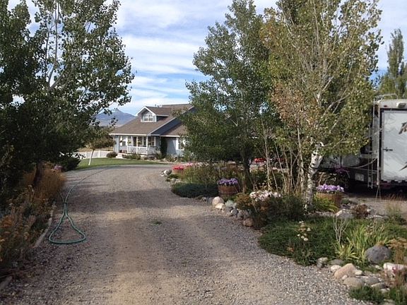 • Exterior Features: Flat Terrain, Garden, Irrigated, Landscaping, Mountain View, Natural Gas to Property, Patio, RV Parking, Sprinklers, Covered Patio, Covered Deck, Porch