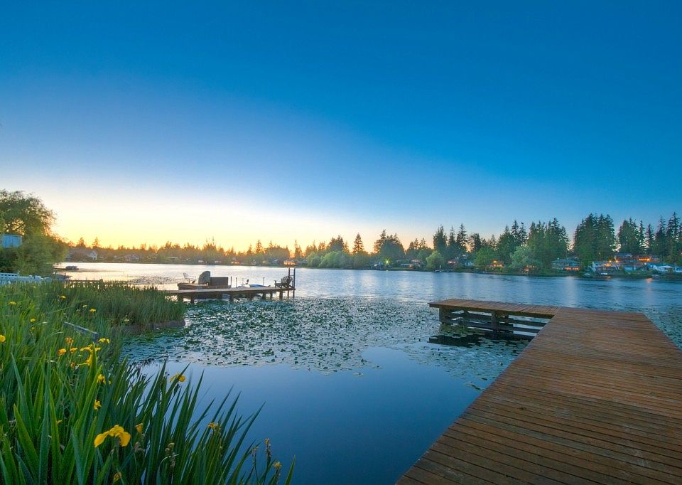LAKEFRONT HOME - ready for Summer! Over 70 feet of waterfront to enjoy & over HALF an ACRE. Comes with dock plus a vintage cabin by the water. Floor to ceiling windows in the Living Room look out to the yard & lake. Flexible floor plan with up to 6 Bedrooms or 4BR's plus Den & Bonus. 3 car detached garage. Fantastic huge yard in front with fruit trees & huge yard in back. Subdivide? buyer to verify. Don't miss this beautiful oasis with easy access to Boeing, shopping & freeway. Mukilteo Schools.