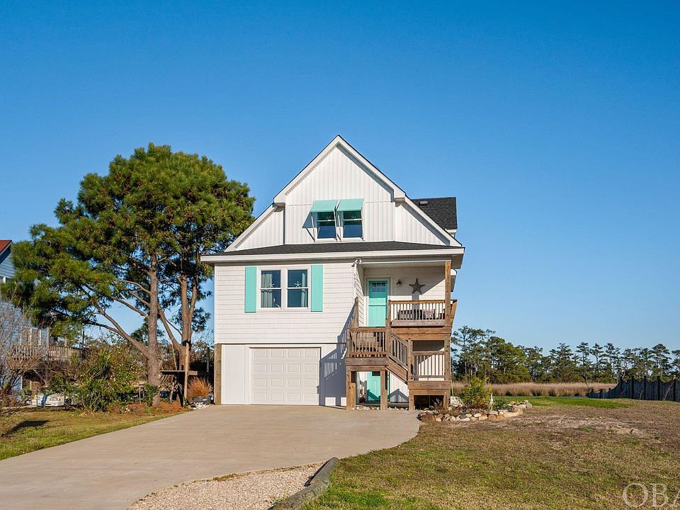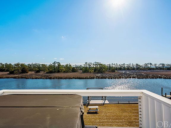 Welcome to Kitty Hawk Landing, a boaters dream community! This 2020 custom  home offers newer quality construction and breathtaking water views. Savor the stunning sound views from the multiple outdoor living spaces and soak in the coastal breeze. The large screened-in porch provides a comfortable retreat to enjoy the outdoors year-round. Boating enthusiasts will delight in the deep water canal right in your backyard with a private dock and boat lift in addition to the community boat ramp, offering easy access to the waterways for endless days of adventure. After a day on the water, rinse off in the convenient outdoor shower before heading inside. The open-concept layout seamlessly integrates the living, dining, and kitchen areas, creating an ideal space for entertaining. The fully furnished interior exudes coastal charm with its tasteful decor and thoughtful touches throughout. The kitchen features high-end appliances, stunning leather finished granite counters, custom cabinetry, and a spacious island. With a deep garage, there's ample space for storing your water toys and vehicles, ensuring that everything you need for coastal living is right at your fingertips. Kitty Hawk Landing offers community beach access and private parking, allowing you to enjoy the sand and surf whenever the mood strikes. Whether you're a boating enthusiast, nature lover, or simply seeking a tranquil retreat, this home offers the perfect blend of luxury and coastal charm.