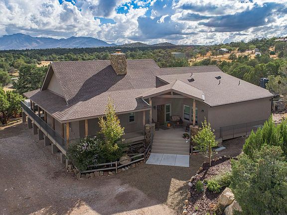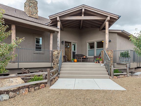 Gorgeous horse property with views of Granite Mountain, Table Mountain, and the San Francisco Peaks. This property has it all! The wrap around porch with wheelchair access invites one to sit and take in the views in every direction. The completely remodeled main house is stunning and offers a very open floor plan. It has parts of the original log home within its interior. It boasts 4 bedrooms with 4 bathrooms, with its master bedroom and in-law suite on the main floor. Included is a mud room, laundry room, office, and finished basement being used as a rec room. The attached in-law suite with private exterior access has 1 of the bedrooms and 1 bath with its own living room and kitchenette. The separate guest house will not disappoint either. It has 1 bedroom, 1 bathroom and a