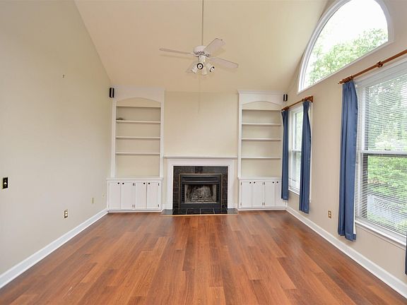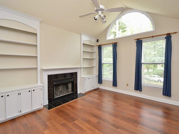 - Living Room: Fireplace, Ceiling-Vaulted, Floors-Laminate, Books