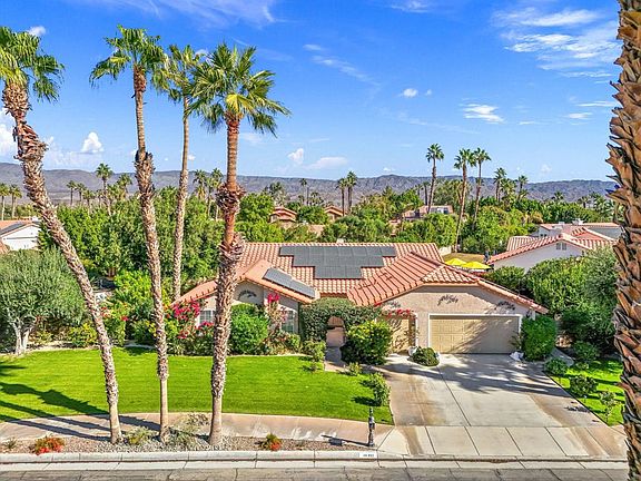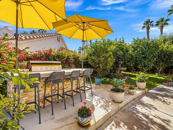 Welcome to your dream home in the heart of Palm Desert! This immaculate single-level residence boasts an expansive lot, perfect for outdoor entertaining and relaxation. Enjoy the desert lifestyle with a newer pool and spa, set amidst a beautifully landscaped yard. This elegant floorplan offers vaulted ceilings, a welcoming living room and there is a 2 car garage plus a golf cart garage. The kitchen features stainless steel appliances, including a gas cooktop and a hood. The upgrades are plentiful- including newer paint on the interior and exterior a few years ago, brand new windows, newer flooring in the bedrooms, a tesla charger, and a recent backyard transformation. The backyard is a slice of paradise with a dazzling pool and spa, built in gas bbq, citrus trees and romantic fountains and colorful art. The low HOA is another bonus of this gated community. The prime location is near Ronald Reagan Elementary School, Colonel Mitchell Paige Middle School, Palm Desert High School, and UC Riverside Palm Desert Campus. Also close-by is shopping, entertainment, and several Country Clubs with golf courses. Freedom Park offers a close dog park for your furry friends. This home offers the perfect blend of luxury, comfort, and convenience in a prime Palm Desert location. Don't miss out on this exceptional opportunity. Contact us today to schedule a viewing!