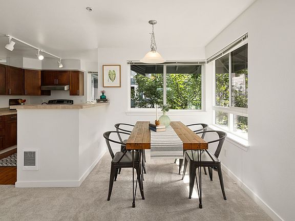 SJA Property Management proudly presents this top-floor corner unit, you're greeted by an open concept floorplan, sun-filled west & south facing windows w/ treetop & sunset views! A wood-burning fireplace adds a cozy ambiance to the living room as it flows to the dining area & kitchen with stainless steel appliances. 2 generous-sized beds w/ walk-in closets, a spacious bathroom, & a separate laundry full-size washer/dryer. The large west-facing front deck is perfect for entertaining or a place to enjoy the expansive sunset views. Park in your private individual garage or uncovered parking spot. On-site amenities include a clubhouse, outdoor pool, hot tub, gym, & playgrounds.