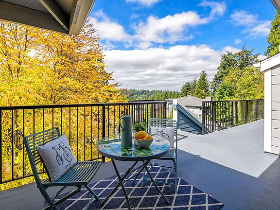 Large west-facing front deckWood-burning fireplaceTop-floor corner unitTreetop and sunset viewsSpacious bathroomPrivate individual garageExpansive sunset views