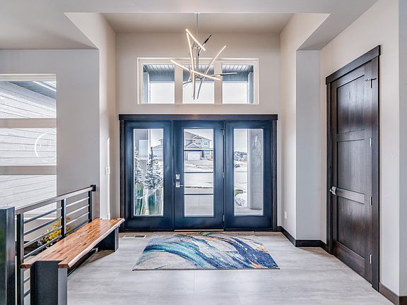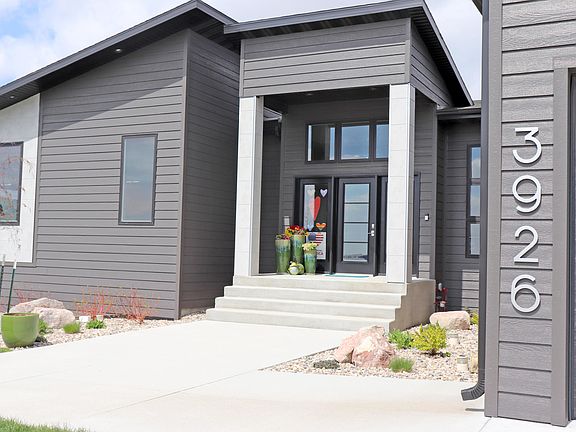 Absolutely Stunning modern contemporary located in PROMONTORY POINT in NW Bismarck! This ranch style, open concept plan will WOW you from the moment you step in the front entry. Custom built in 2017, this pristine home has many creative design features that make it unique. The kitchen has a large island, quartz counter tops throughout, black stainless steel appliances, butler's pantry that includes a lighted wine cooler & beverage fridge. There are remote controlled blinds on the huge dining room/kitchen windows that offer a beautiful view of the open prairie and river beyond. Main level ceiling height varies from 10 to 14 feet with 8 ft doors throughout. The gorgeous master suite is located on the main level & has an impressive walk-in shower and beautiful tile work. You will find one more bedroom on the main along with a large office/TV room. Off the living room is a covered 12x23 ft Azeck deck, a remote controlled Phantom Screen for wind and bug protection, glass railing, natural gas hook up for grill & outdoor fire pit along with TV hookup. The 12 Ft pillars are topped with natural gas burners for an interesting torch effect on summer evenings. The lower level has a huge great room, 2 large bedrooms with walk in closets, & 2 more baths. The 1354 sq ft, 4 stall garage is completely finished with hot & cold water, heat, epoxy finished floors, 3 floor drains, storage cabinets & access to the 12x12 lighted pergola covered patio for extra entertaining. The exterior finishes are a combination of HardiPlank & Nichiha, both products are maintenance free.