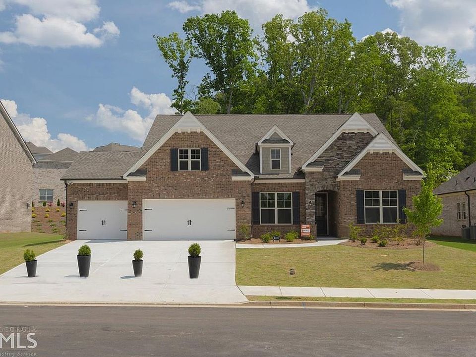 "Rutledge C" Brand new 3 bed + 3 bath ranch style slab home w/ a 3rd garage & 10ft ceilings. Built w/ energy savings in mind, including additional insulation. 12 ft. coffered ceiling in spacious family room w/ one-story 2-tier stacked stone fireplace. Gourmet kitchen w/ 12 ft. ceilings, stainless steel appliances, 42" cabinets w/ under cabinet lighting, walk-in pantry, and more! Frameless glass shower door and double vanity in master bath. Upgrades throughout: gas stub out at covered patio, beadboard panel moulding in dining room, & more! Quick move-in!
