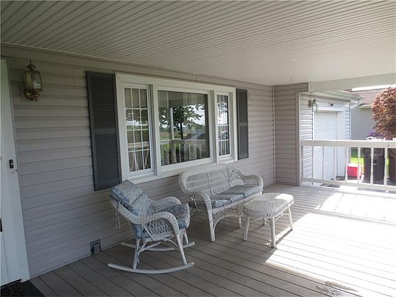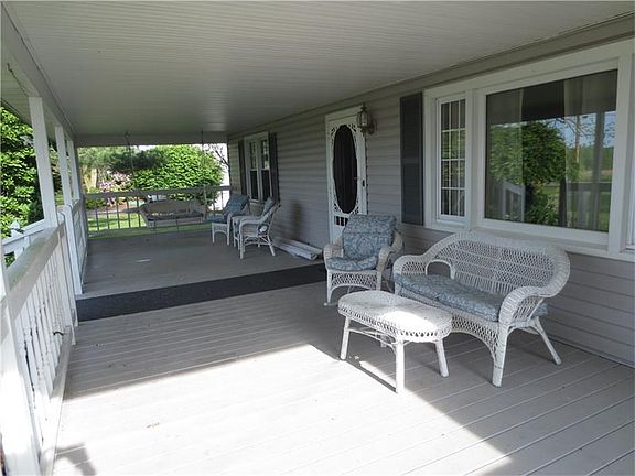 Cozy 3 bedroom ranch nestled on a large beautiful landscaped lot with a country feel yet close to town. Inviting covered front porch allows you to watch the seasons unfold. Large rear yard has a small storage shed, heated above ground pool with deck and a picnic table and fire pit. Updated kitchen and bath, newer windows, rec room in basement, backup battery on sump pump and 3 tiered water filtration system.