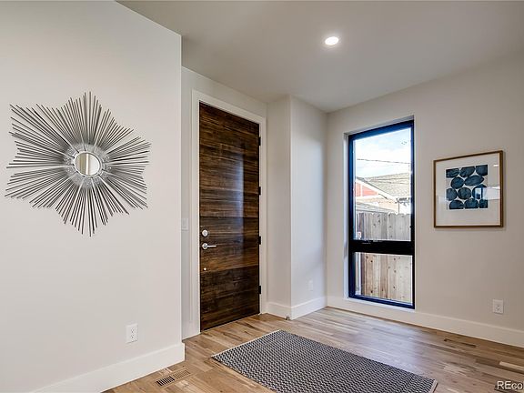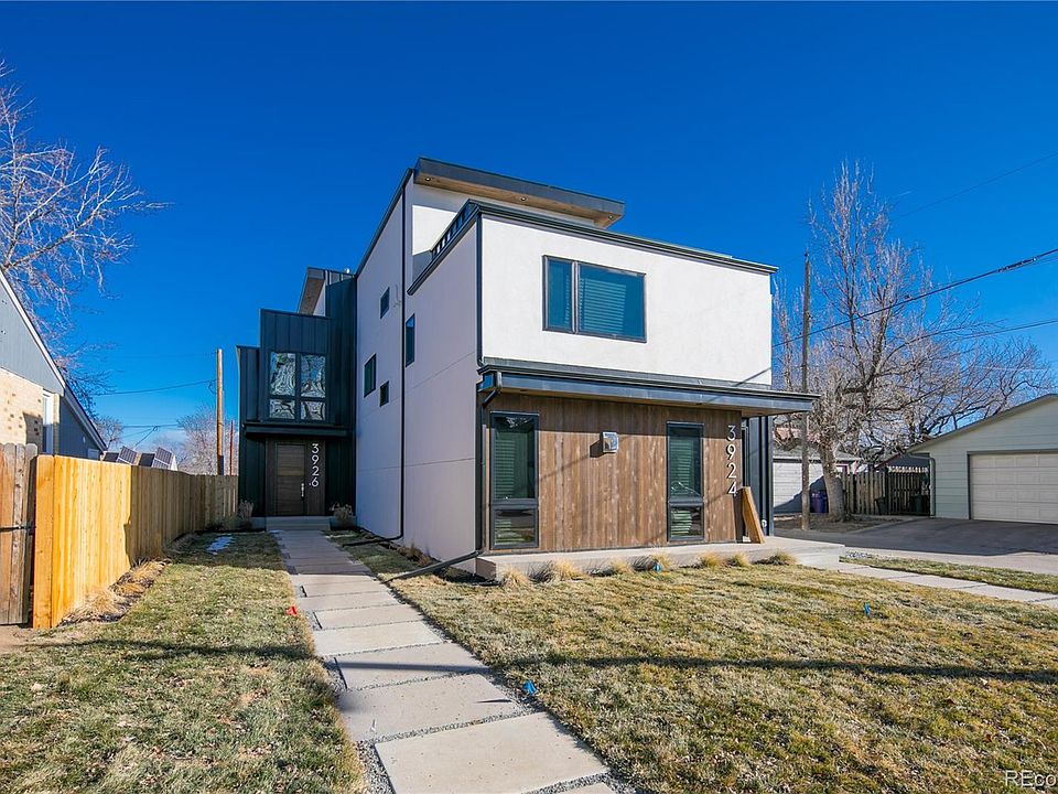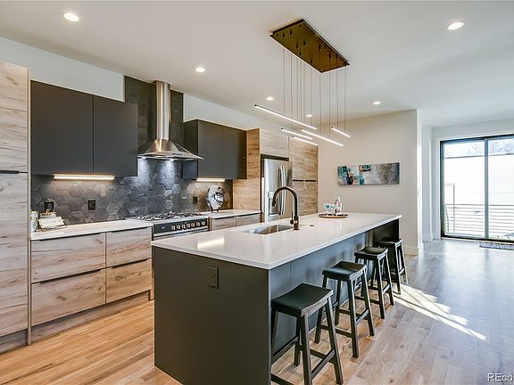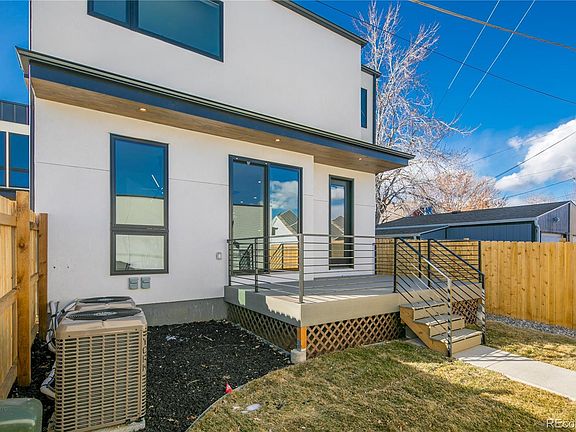 The subject is a new paired home in the Sunnyside neighborhood. There never has been or will be a property like it, because of the uniquely special lot. The lot is 165 ft deep rather than the typical 125 ft. and is surrounded on three sides by alleys. The size and profile lot allows for a 3 car garage, a wider unit with both a yard and deck. The home is 27 ft wide with approximately 2737 sf above grade on three levels with 3 bedrooms and 4 bathrooms. The paired homes are stacked front and back which allows for maximum privacy in the porches, patios and roof decks. High quality contemporary finishes include European cabinets, Smeg Italian gas stove and quartz counters, site finished oak hardwood floors, foyer, 21 ft. great room with fireplace, 22 ft master bedroom with 5 piece master bath and large walk in closet and 15 x 21 ft bonus room on the third level with wet bar, powder room and wrap around deck with views of downtown Denver. Hurry, there isn't another one like it!!