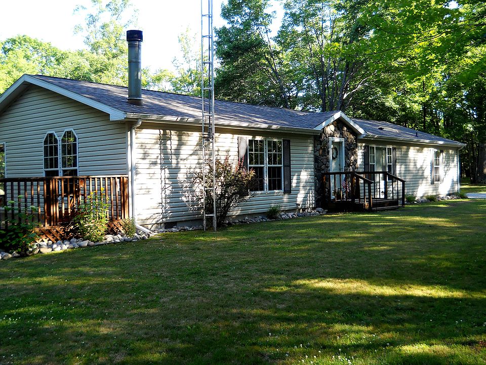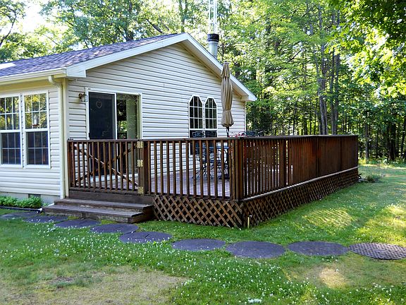 Well maintained home on 15 wooded acres. Very open floor plan in home. Fireplace currently has a pellet insert. New forced air furnace and air conditioning in 2023. Asphalt and concrete parking areas. Wooden deck on south side of home. Set and enjoy the wildlife. Nice trails thru out property and a large food plot and 2 commercially built deer blinds. New tiled walk in shower. Large bedrooms. Home is immaculate. 30x40 pole barn has electric and concrete floor. Some 220 lines. 2 parking areas are wired for a camper. She shed and 20x22 barn also have electric. Full house Generac backup generator. Lots of cabinets in kitchen. All nice appliances. Check this out just in time for fall hunting. Golf course just 2 miles down the county maintained road.