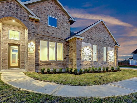 This new construction home is a must see. Excellent location for a family who loves the outdoors, an ample 1/2 Acre lot and the serenity of country living with a short distance to the city. Split floor plan designed with a large open family room and kitchen with a island. Spacious Owner's Retreat with stand alone shower and soaking tub and dual vanity's and a walk in closet. Property has not flooded per seller. No back neighbors and extended covered back porch perfect for entertaining or enjoying a relaxing sunset. Walk in utility and mud room with access to side door leading to driveway. Three car attached garage perfect for additional storage. Formal dining, pantry dream kitchen with an island and Quartz counter tops. Stainless steel Samsung appliances. Soaring ceilings recess lighting and a cozy built in remote control electric fireplace. Plush carpet and wood look tile throughout.
