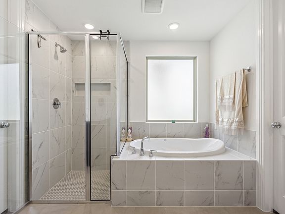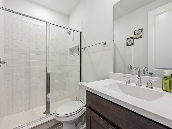 This stunning north-facing modern home in the highly sought-after Mosaic addition, within the top-rated Prosper ISD, offers a perfect blend of luxury and comfort with tons of upgrades throughout. The expansive living room features soaring ceilings, a wall of windows, and a sleek tile fireplace with a wood mantle, creating a bright and elegant space. The kitchen impresses with a Frigidaire five-burner gas cooktop, a large granite island, stainless steel appliances, and designer pendant lighting. The serene primary suite includes a spa-like bath with a separate glass-enclosed shower. Upstairs, a spacious game room overlooks the living area below and is accompanied by four secondary bedrooms. Stylish layered light-filtering blinds and rich wood flooring run throughout the home, adding warmth and sophistication. Enjoy a covered patio in the backyard, ideal for entertaining or relaxing. One a year old and exceptionally well maintained, this home also offers convenient access to the expanding Dallas North Tollway. The community includes a club house, community pool, fitness center and playground.