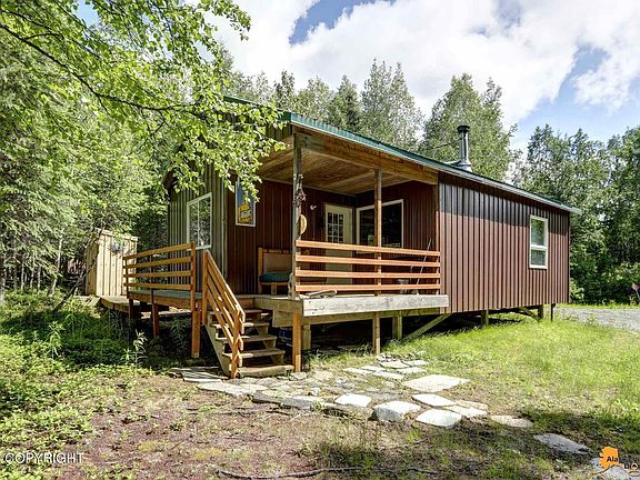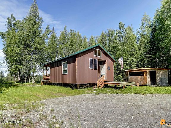 Beautiful cabin, with over 330 ft. of Montana Creek frontage, gorgeous views of the AK Range, over looking Montana Creek , Beaver house, lots of wildlife, great fishing, feels likea wildlife sanctuary, 250 gal. holding tank, on demand water heater, Honda generator, kitchen, living room, bedroom, 1/2 bath with shower & hand sink, Rd. access in the summer, less 1/2 mile from Montana Creek Rd.