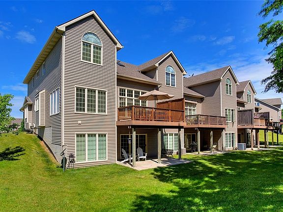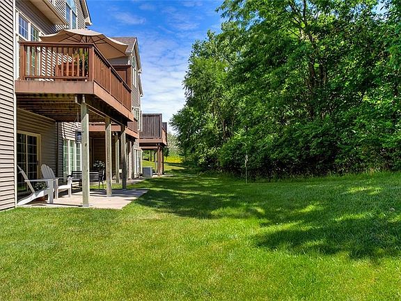 Don't miss this Three plus bedroom association home. Backs to 100 year old oak trees! Enjoy this nicely appointed two story on super hard to find wooded lot. Very rare walkout to secluded heavily wooded area. Great Room features 11ft ceilings and beautiful central fireplace. Kitchen has stunning cabinetry, subway tile backsplash, stainless appliances, granite counters. Many upgrades including extra windows throughout.Light streams through! Upstairs there is a spacious Master bedroom with walk-in closet and a private bath with separate walk-in shower and jet tub a 2nd bedroom over looks the trees in back. An additional full bath, laundry room near the bedrooms, step up to the loft/office/bedroom with skylights. Lower Level walkout basement is finished with large family room, bedroom and full bath. Association home - enjoy amenities of single family living without headaches of snow removal and lawn maintenance and exterior. All information obtained from Seller and public records.
