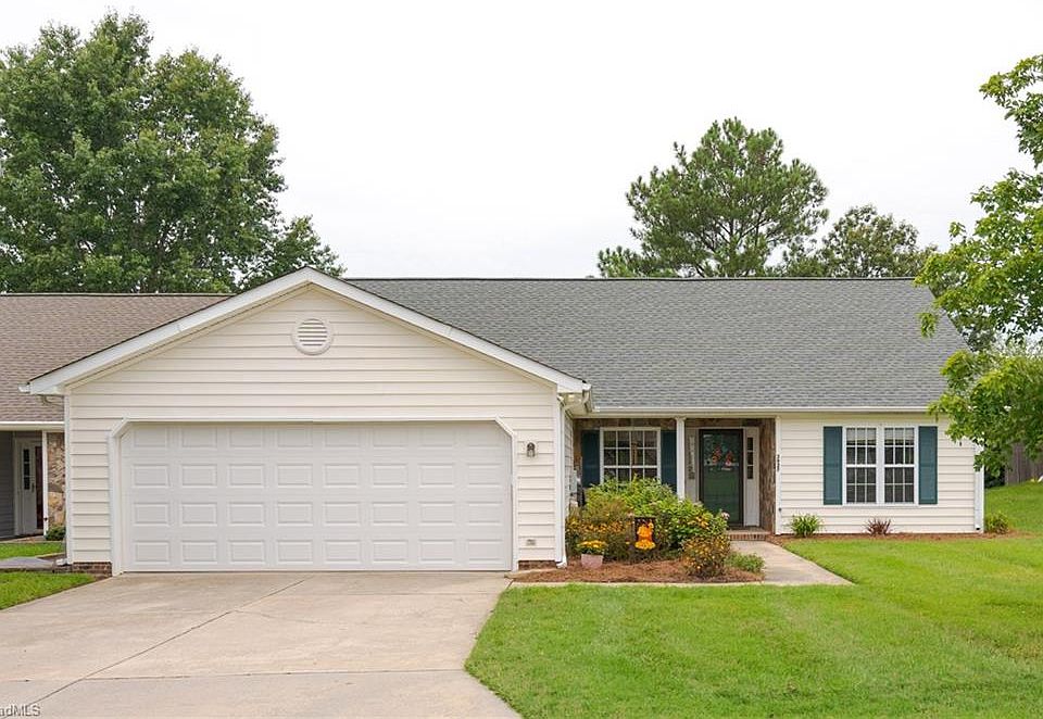 Coming Soon! One level, low maintenance townhome living with 3 bedrooms/2 bathrooms and a 2 car garage. This home features open-concept living and dining rooms, vaulted ceilings, and a gas fireplace. The large eat-in kitchen is also vaulted and has plenty of workspace, with an island, pantry, and convection range. The split bedroom layout gives the primary suite plenty of privacy with an oversized ensuite bath with separate walk-in shower, garden tub, dual vanity, and a huge walk-in closet. A privacy-fenced patio, perfect for entertaining, completes the space. This home is located in the very desirable Eagle Glen neighborhood, centrally located between Greensboro and Jamestown, and is convenient to The Palladium shopping center, entertainment, walking trails, and highway access. Welcome home!