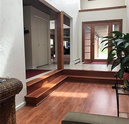 Spacious and uniquely designed contemporary home located on 3.9 private acres. Enter and be wowed by the vaulted 2 story living room with log burning stone fireplace. Entertain family and friends in the open concept dining and family room w/centrally located circular log burning fireplace. Cook to your hearts content in the large eat in kitchen with Quartz counters, wall of windows, 2 sliders to expansive deck and yard beyond. One bedroom and one bath on each floor. Master bedroom upstairs with loft opening to family room below, full bath and 2 large closets. Main floor bedroom with California closets organizers and hall bath complete with soaker tub. Lower level bedroom with 2 windows, closet and full bath. Oversized laundry and storage room also in lower level. Attached garage holds 4 cars tandem (2 and 2); could hold up to 6 as it is both extra wide and deep. Roof 2019. Property is private, mostly level. Close to Rte 8, Turnpike, shopping, farmers market. Pine Richland Schools
