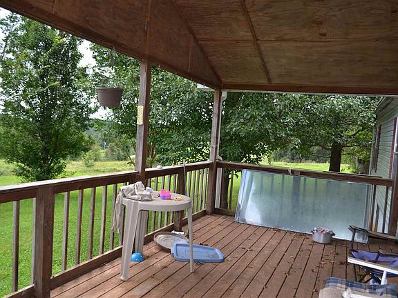 Tons of potential, private country living on 3 acres. Pretty mountain views from the large covered front porch. 4 outbuildings. Home needs TLC. Being sold "AS IS" Seller is leaving all contents in home and buildings. White Van conveys. Large family room and den with fireplace. Split bedroom plan.