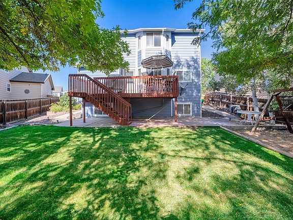 $4000 ALLOWANCE TOWARDS CARPET . Updated 3 bdrm, 3 bath family home in great neighborhood. Updated w/new exterior paint, new master bath and shower, new light fixtures, new stainless appliances. Walk in to vaulted ceilings open floor plan, neutral colors, gas fireplace, dining room, main floor laundry. Large deck with large shady yard and playset included. Close to E470, Southlands and walk to Dakota Valley Elementary. Huge vaulted master suite with 5 piece bath that is new jetted tub, AC, walk in master closet, storage shed, ready to go.