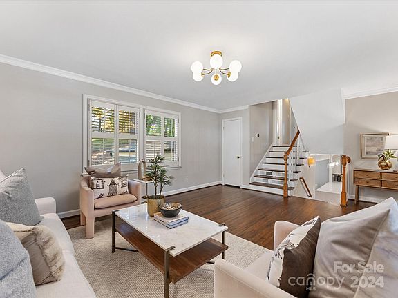 Great opportunity in highly desirable Beverly Woods. 4 bedroom, 2.5 bath, gleaming REFINISHED hardwood flooring 2024, professionally painted 2024, New roof 2017, solar panels 2017, HVAC 2021, Hot water heater 2023. Living room on main level, remodeled kitchen with SS appliances, den/family room with gas fireplace, sunroom, guest suite with full bath, and half bath on lower level. Three bedrooms and one full bath on upper level. Great schools, close to Southpark Mall, entertainment and restaurants.
