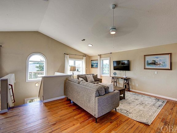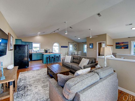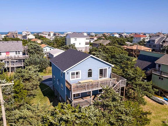 Conch Sounds is located canal front in the friendly and desirable sound side community of Hatteras Colony. This four bedroom, three full bath home with private dock is situated at the end of a navigable canal with direct access to the Pamlico Sound, making it ideal for all of your water sports or fishing adventures. You'll enjoy those beautiful canal views and the refreshing sound side breezes from the top-floor sundeck. As you enter the home from the convenient under-house dry entry, you'll make your way up to the first floor. Here you will find two bedrooms with ensuite baths and two bedrooms that share a hall bath, as well as the fittingly located washer and dryer. Everyone will love congregating on the top floor with its bright and spacious open-concept kitchen, living and dining areas. Also on this level is a half bath and game area where you can enjoy foosball or a game of Pac-Man. This house has been lovingly maintained with many recent improvements, including the replacement of all slider doors ('20), upstairs heat pump ('20), refrigerator ('20), roof ('21), water heater ('23), two new bathroom windows ('23) and new deck flashing ('20). Recent upgrades include a kitchen remodel consisting of freshly painted kitchen cabinets, a new backsplash, butcher block countertops ('22), as well as fresh paint, light fixtures, furniture and decor throughout the home. Beach access is only a quick walk across Highway 12 to one of the public beach accesses along Beachcomber Drive. This home is an excellent investment, with over $60K in rental income in 2022. Whether you are looking for a vacation or a second home, Conch Sounds will surely fit the bill.