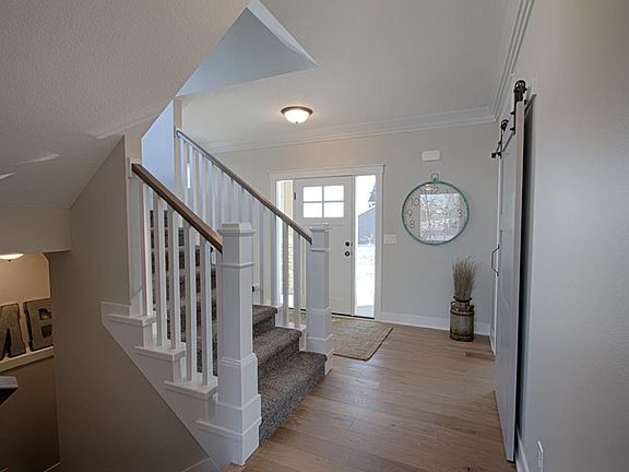 Westport Plan by highland Development with large pantry, center island kitchen, granite throughout, 2nd floor laundry room, tile shower and whirlpool tub and in master suite, lots of crown throughout home, Kohler fixtures, 9 ft ceiling on first floor and basement, stone retaining walls at basement windows, covered deck, belt driven garage door openers with battery back-up, insulated garage, master and all wet area insulated for sound. Call for extended list of standard features. This home features an oversized walk-in pantry and a pocket office. No closing cost with preferred lender.